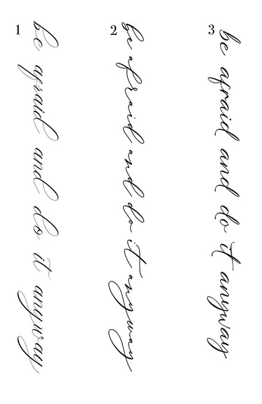 "BE AFRAID AND DO IT ANYWAY" This piece is approximately 25cm's and is best suited to the spine. Three font options available to choose from.