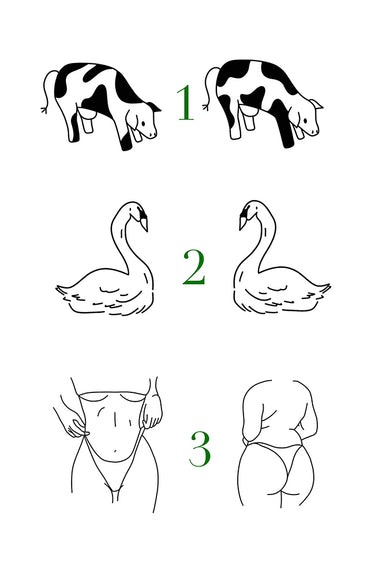 Tattoo Sizes: 1) Cows 4cm, 2) Swans 4cm, 3) Women 5cm